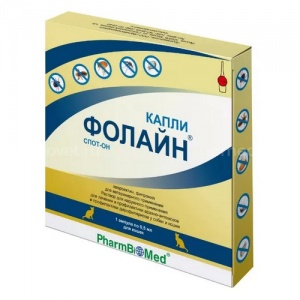 Капли Фолайн эффективны против личиночных и половозрелых фаз развития вшей (Linognathus setosus), блох (Ctenocephalides felis, Ctenocephalus canis), власоедов (Trichodectes canis, Felicola subrostratus), клещей отодектосов (Otodectos cunotis,) и иксодовых клещей (Ixodes spp., Rhipicephalus spp., Dermacentor spp., Amblyomma spp.), a также личинок нематоды Dirofilaria spp., паразитирующих у собак и кошек.